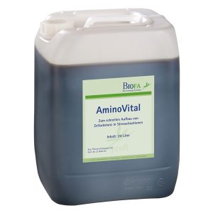 AminoVital je ojačivač bilja za brzu izgradnju obrambenih staničnih tvari u stresnim situacijama. Sadrži 75% aminokiselina i peptida u suhoj tvari (9% ukupnog dušika od toga 7% aminodušik). Udio slobodnih aminokiselina od 25% znatno je veći u usporedbi sa sličnim proizvodima. Aminokiseline imaju odlučujuću ulogu i služe za stvaranje obrambenih proteina te za rast odgovornog hormona auksina. Biljka sintetizira aminokiseline iz ugljika, vode i dušika. Prskanjem aminokiselina na list, biljka ih direktno preuzima te na taj način ne prolazi kroz iscrpljujuću sintezu. AminoVital stoga posebno blagotvorno djeluje na jačanje biljke i poticanje rasta u stresnim situacijama. Dobro opskrbljena biljka sa zdravo razvijenim korijenom posjeduje visoku otpornost kod ekstremnih klimatskih uvjeta te na štetnike i gljivične bolesti. Prskanjem AminoVital pada na tlo i tako poboljšava uzimanje mikrohranjiva iz tla te su ista lakše dostupna biljkama.